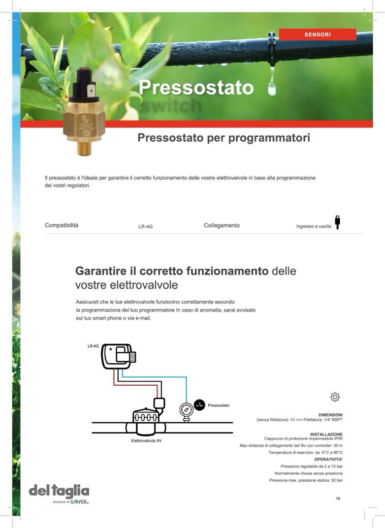 Il pressostato è l'ideale per garantire il corretto funzionamento delle vostre elettrovalvole in base alla programmazione