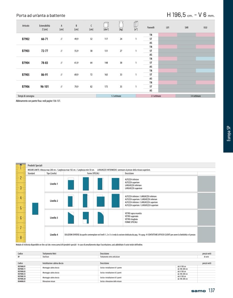 Modulo di richiesta disponibile on-line sul sito: www.samo.it/it/prodotti-speciali - In caso di annullamento dopo l’accettazione, sar