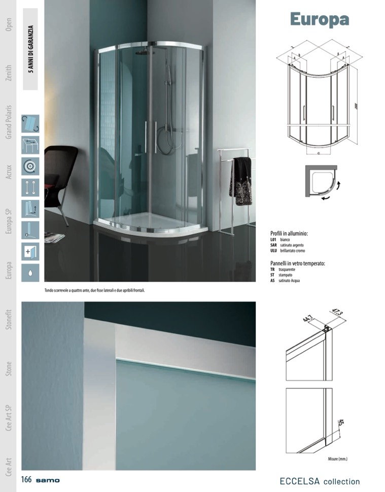 Tondo scorrevole a quattro ante, due fisse laterali e due apribili frontali.