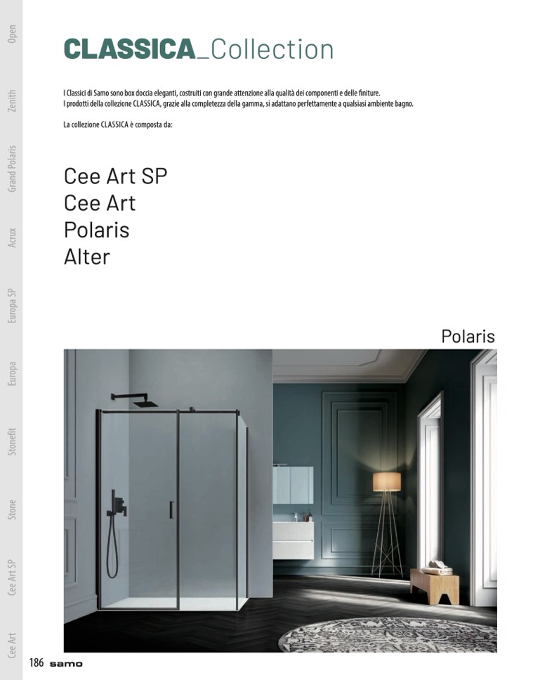 I Classici di Samo sono box doccia eleganti, costruiti con grande attenzione alla qualità dei componenti e delle