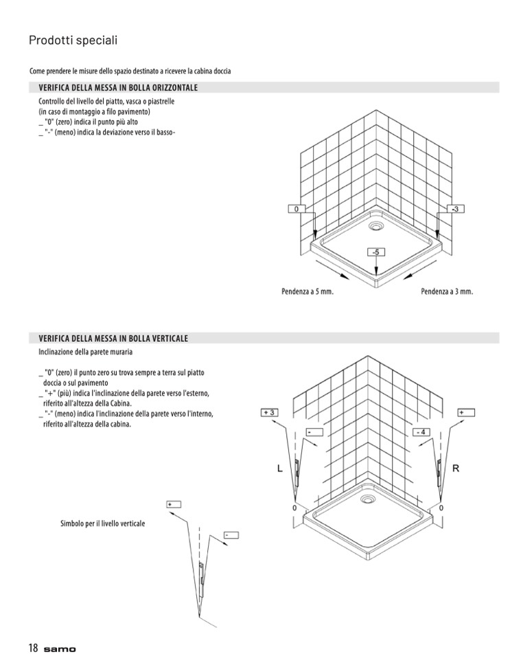 Controllo del livello del piatto, vasca o piastrelle