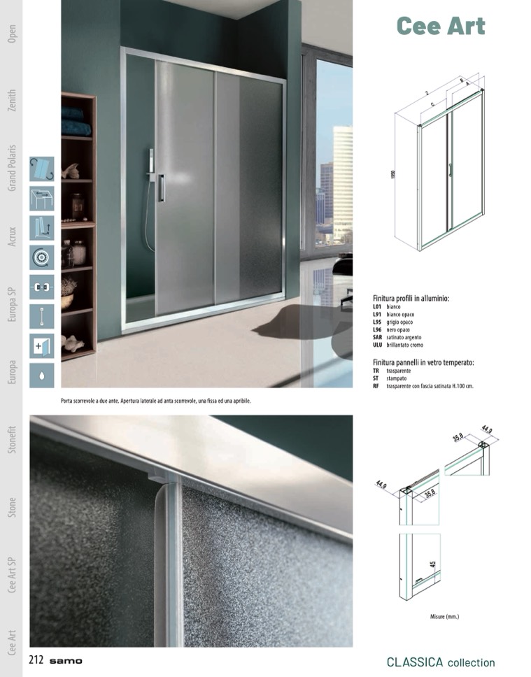Porta scorrevole a due ante. Apertura laterale ad anta scorrevole, una fissa ed una apribile.