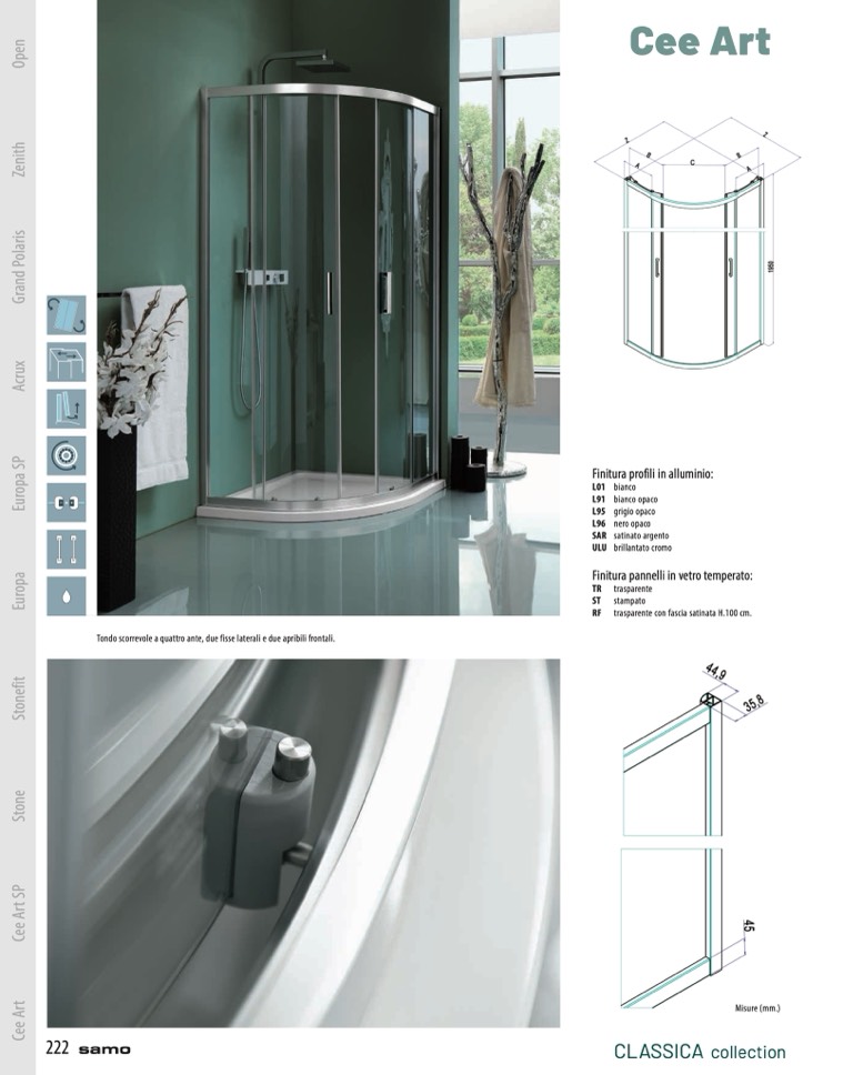 Tondo scorrevole a quattro ante, due fisse laterali e due apribili frontali.