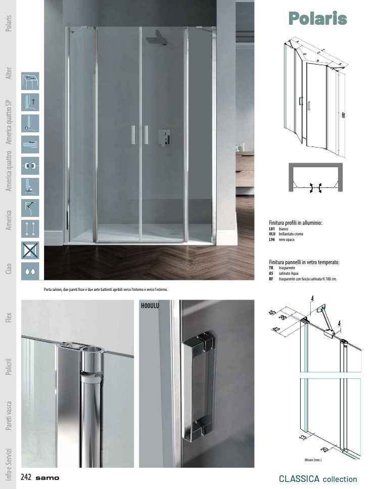 Porta saloon, due pareti fisse e due ante battenti apribili verso l'interno e verso l'esterno.