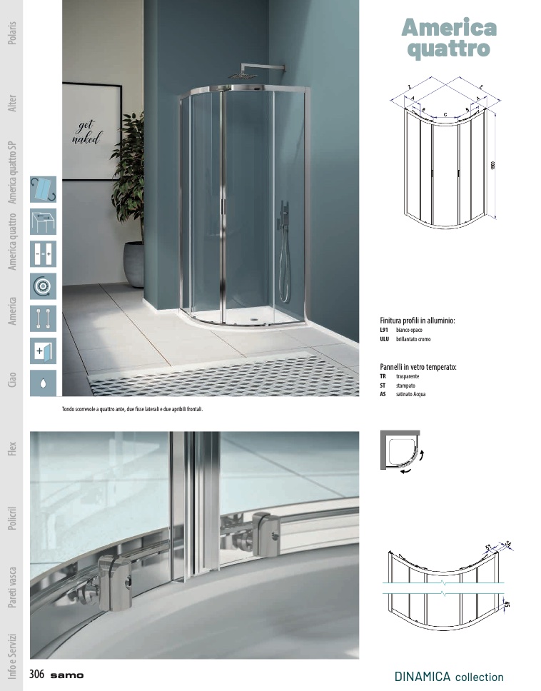 Tondo scorrevole a quattro ante, due fisse laterali e due apribili frontali.