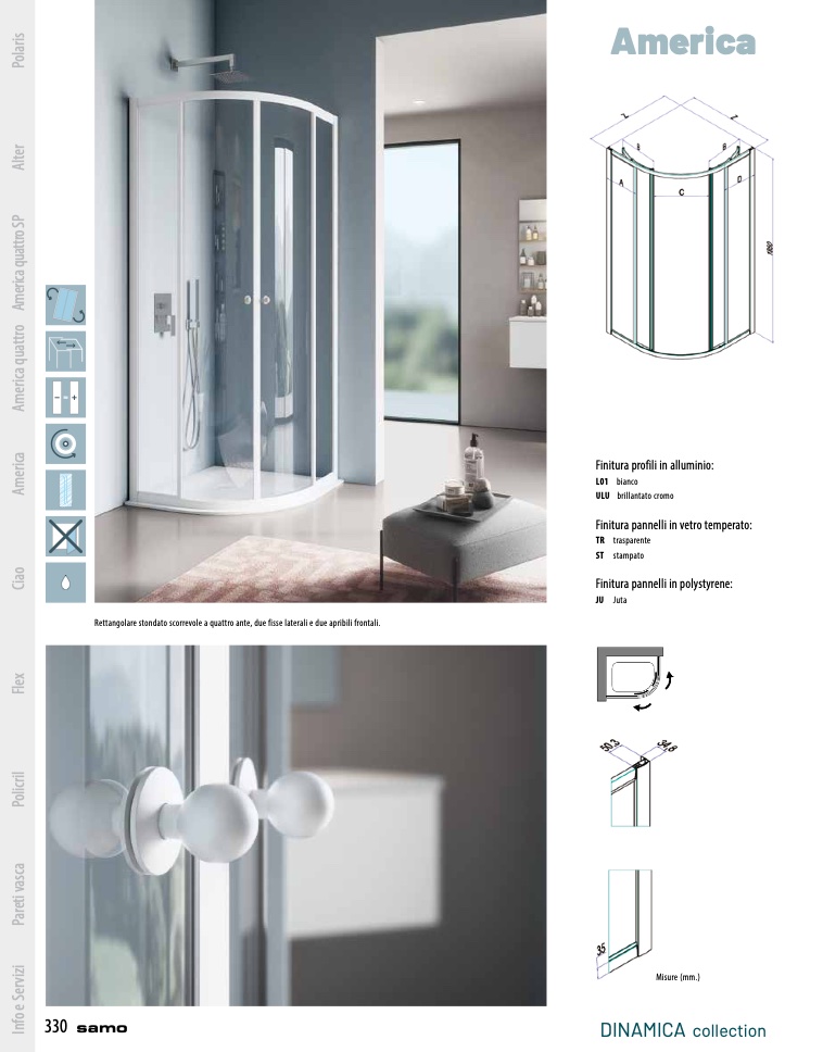 Rettangolare stondato scorrevole a quattro ante, due fisse laterali e due apribili frontali.