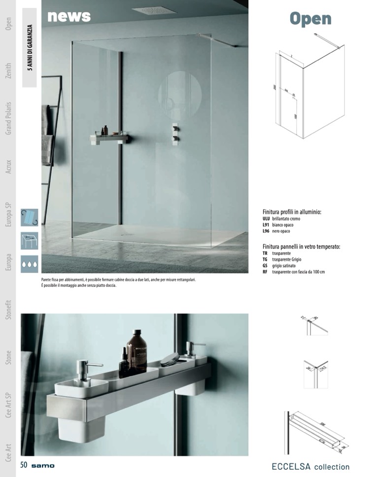 Parete fissa per abbinamenti, è possibile formare cabine doccia a due lati, anche per misure rettangolari.