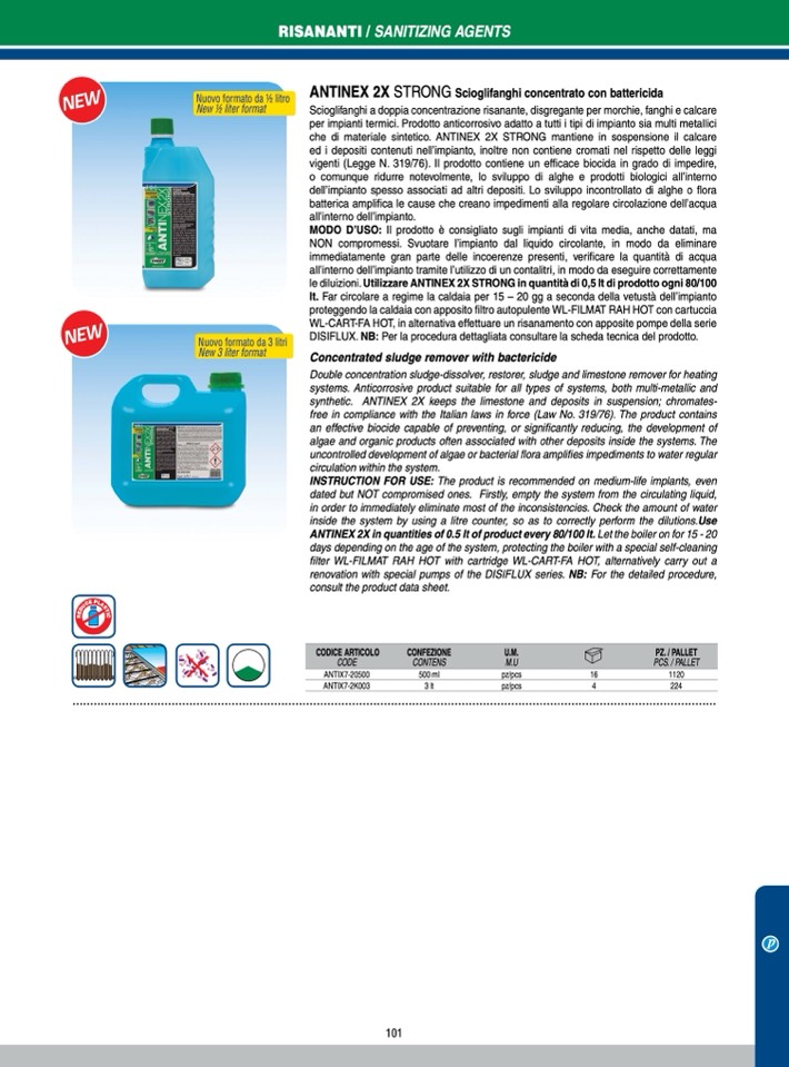 le diluizioni. Utilizzare ANTINEX 2X STRONG in quantità di 0,5 lt di prodotto ogni 80/100