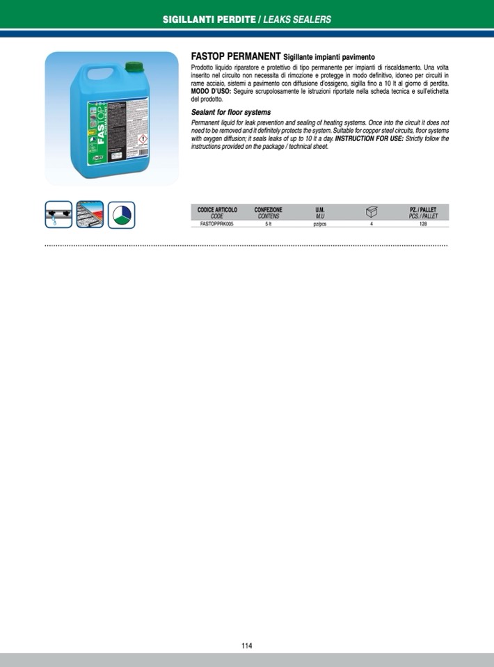 rame acciaio, sistemi a pavimento con diffusione d’ossigeno, sigilla fino a 10 lt al giorno di perdita.