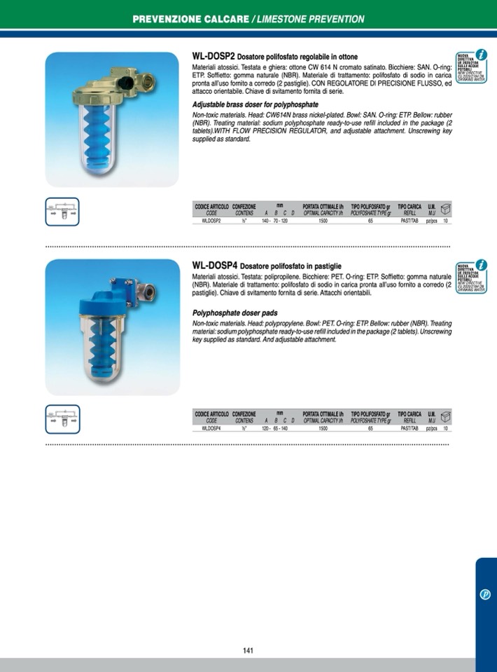 (nBr). materiale di trattamento: polifosfato di sodio in carica pronta all’uso fornito a corredo (2