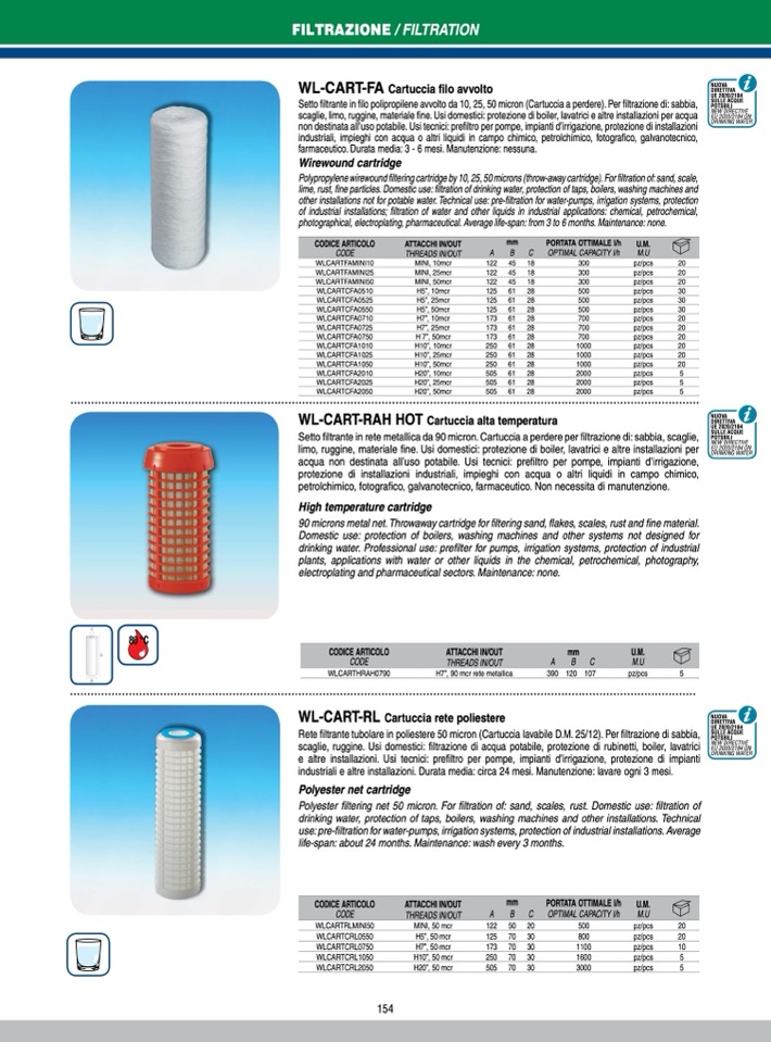 e altre installazioni. usi tecnici: prefiltro per pompe, impianti d’irrigazione, protezione di impianti