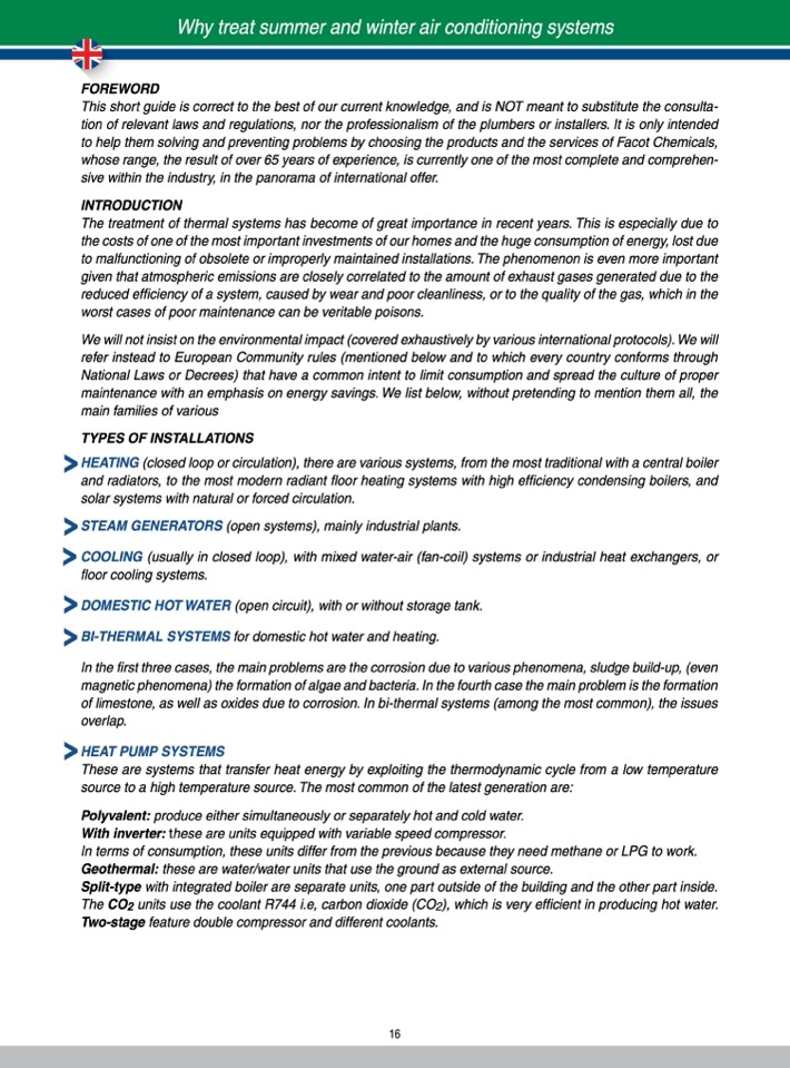 to help them solving and preventing problems by choosing the products and the services of Facot Chemicals,