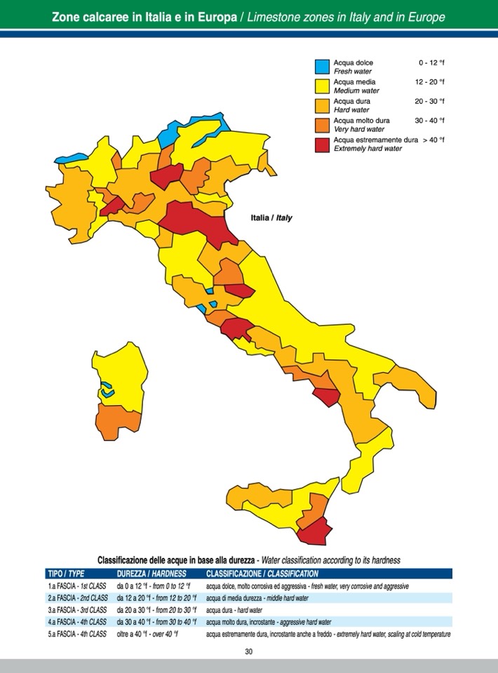 acqua estremamente dura, incrostante anche a freddo - extremely hard water, scaling at cold temperature