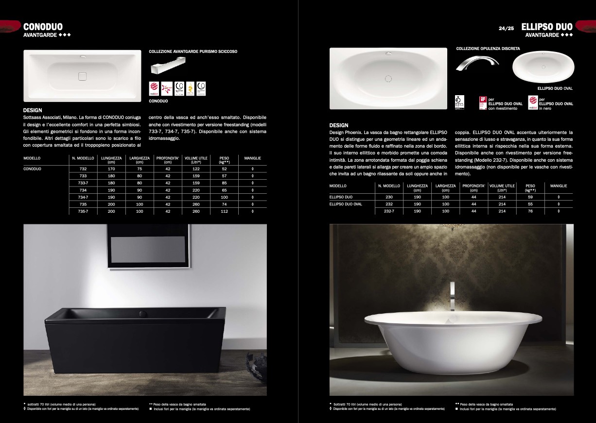 ** Peso della vasca da bagno smaltata
