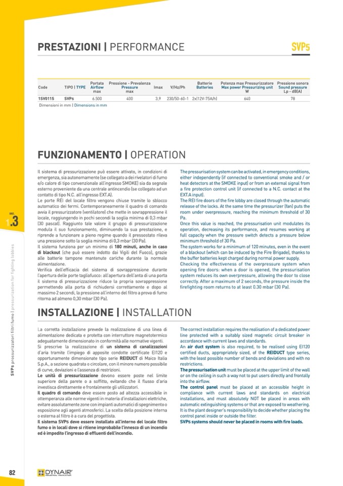 An air duct system is also required, to be realised using EI120