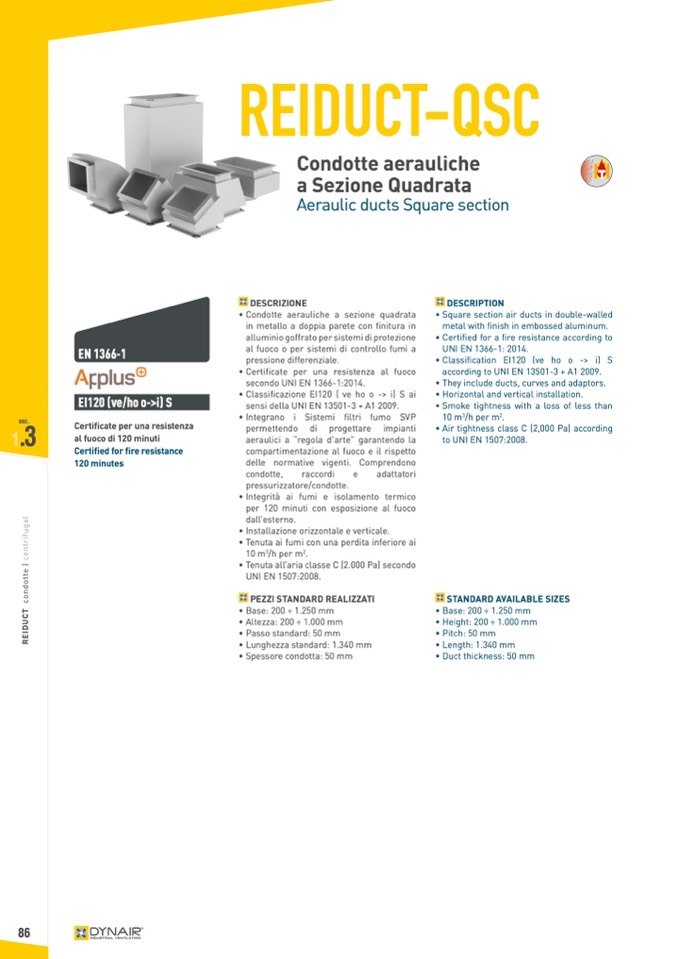 according to UNI EN 13501-3 + A1 2009.