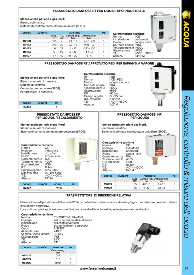 PRESSOSTATO DANFOSS RT PER LIQUIDI TIPO INDUSTRIALE