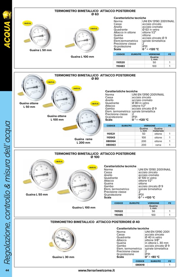 TERMOMETRO BIMETALLICO ATTACCO POSTERIORE