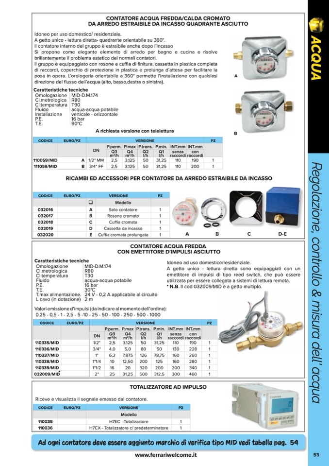 Ad ogni contatore deve essere aggiunto marchio di verifica tipo MID vedi tabella pag. 54