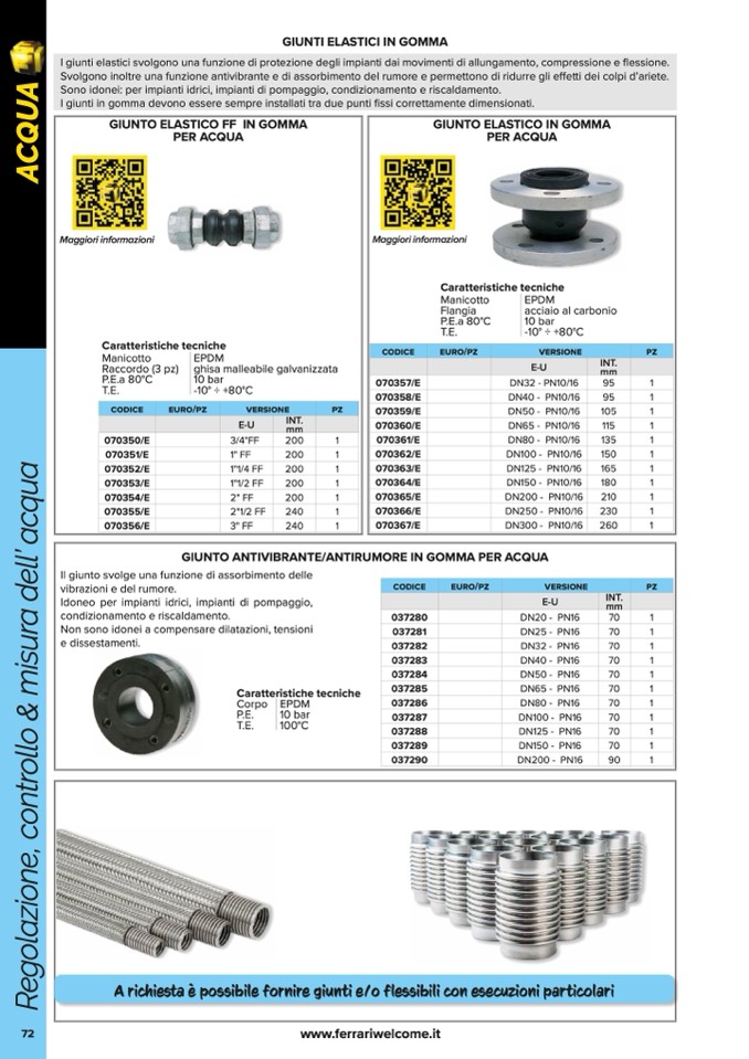 GIUNTO ANTIVIBRANTE/ANTIRUMORE IN GOMMA PER ACQUA