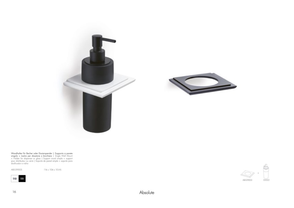 singolo + Lastra per dosatore o bicchiere | Single Wall Mount