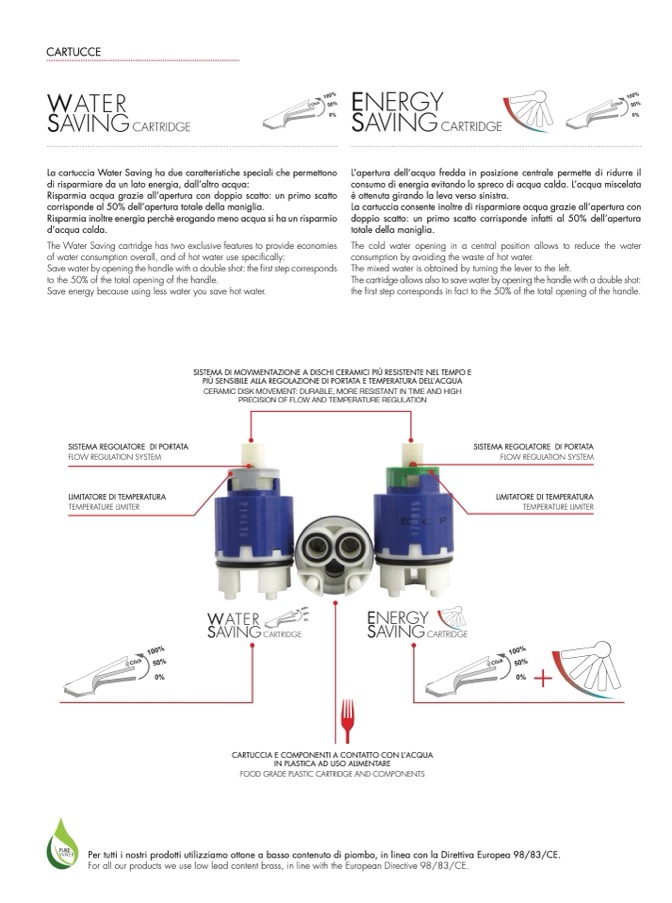 Per tutti i nostri prodotti utilizziamo ottone a basso contenuto di piombo, in linea con la Direttiva Europea 98/83/CE.