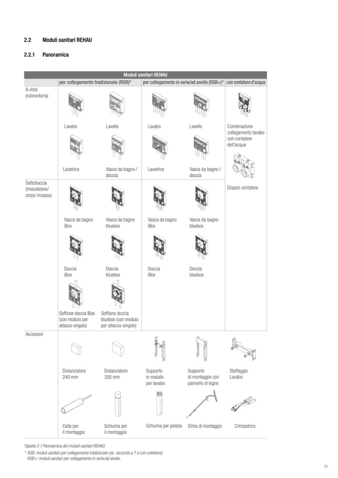 Tabella 2-1Panoramica dei moduli sanitari REHAU