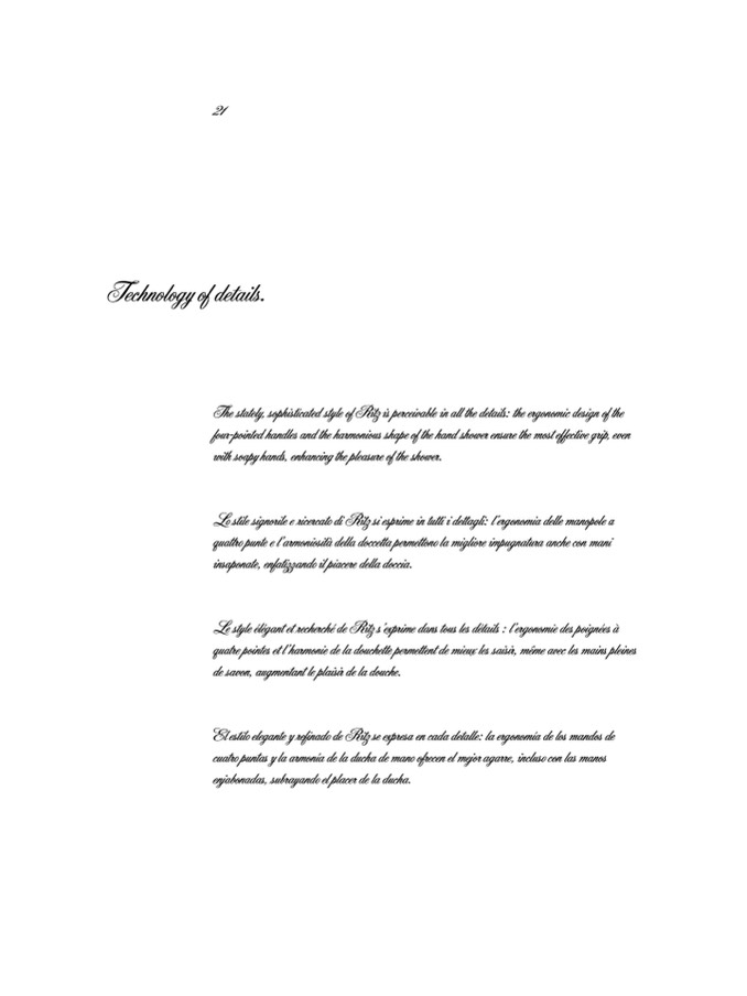 Lo stile signorile e ricercato di Ritz si esprime in tutti i dettagli: l’ergonomia delle manopole a