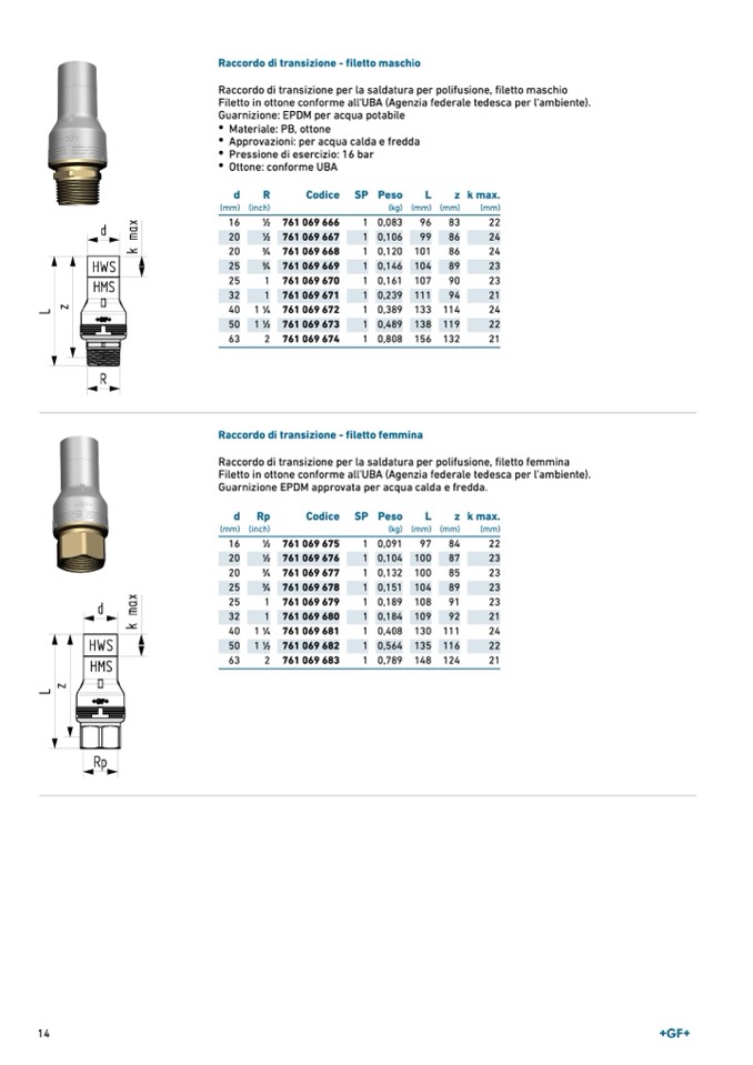 Raccordo di transizione per la saldatura per polifusione, filetto maschio