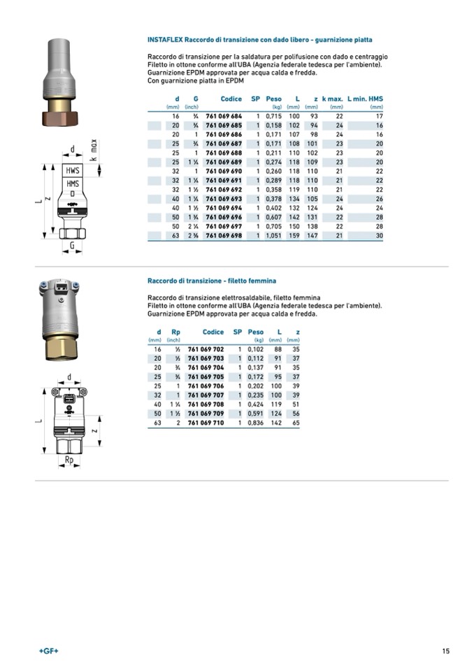 Raccordo di transizione per la saldatura per polifusione con dado e centraggio