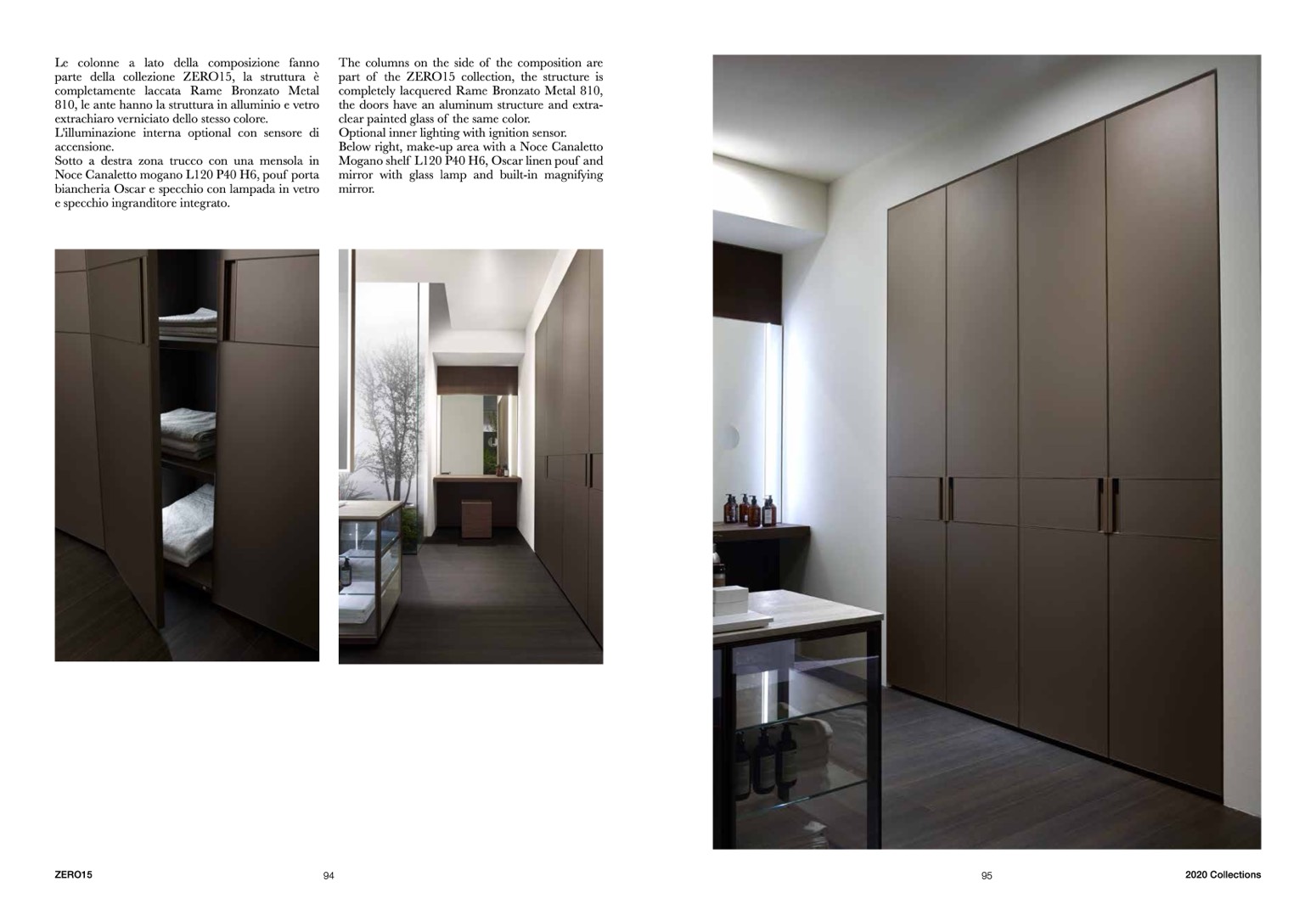 Below right, make-up area with a Noce Canaletto