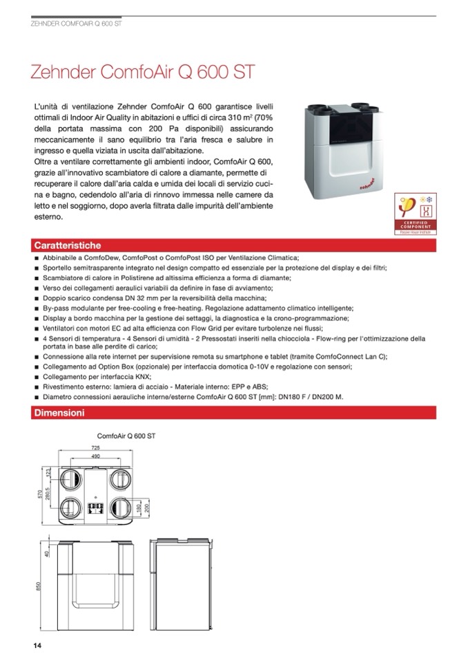 Abbinabile a ComfoDew, ComfoPost o ComfoPost ISO per Ventilazione Climatica;
