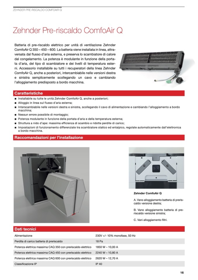 ZEHNDER PRE-RISCALDO COMFOAIR Q