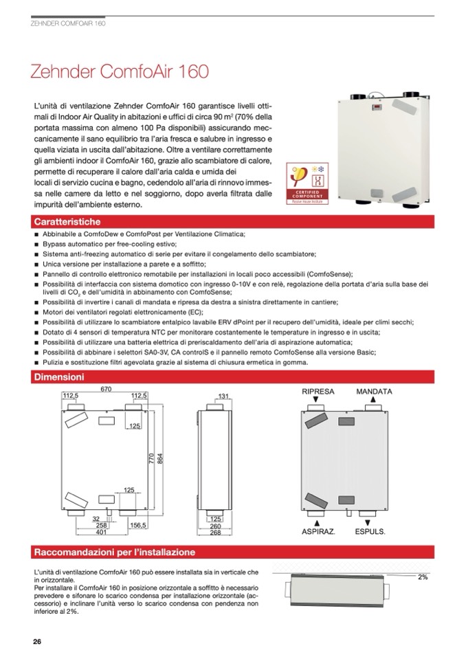 L’unità di ventilazione Zehnder ComfoAir 160 garantisce livelli otti-