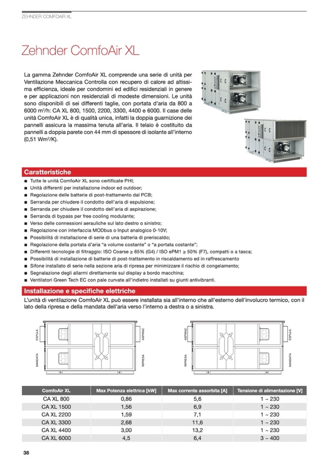 La gamma Zehnder ComfoAir XL comprende una serie di unità per