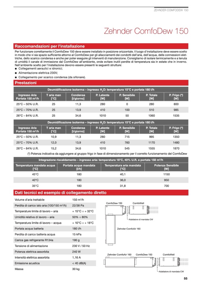 (*) Potenza indicativa da aggiungere al gruppo frigo in fase di dimensionamento per il corretto funzionamento del ComfoDew