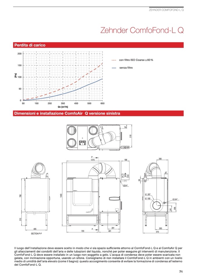 Dimensioni e installazione ComfoAir Q versione sinistra