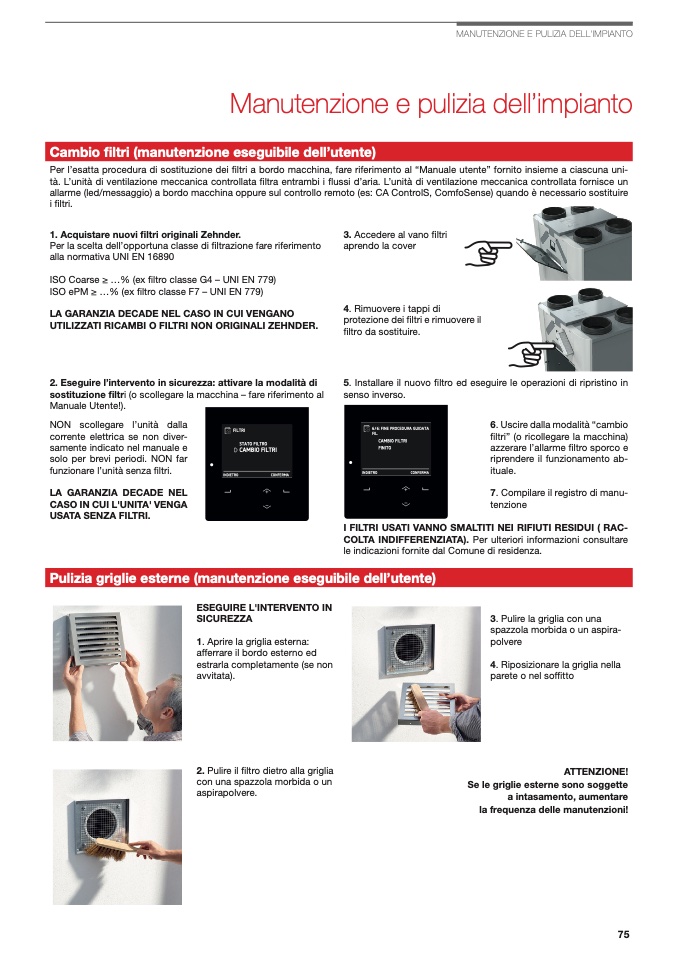 1. Acquistare nuovi filtri originali Zehnder.