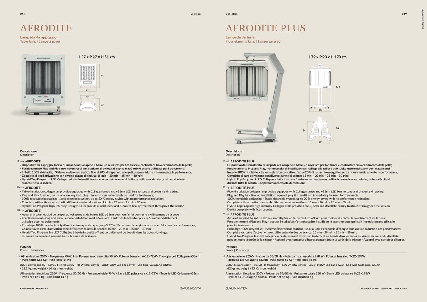 ∙ Tipologia Led Collagene 633nm ∙ Peso netto 62 Kg ∙ Peso lordo 83 Kg