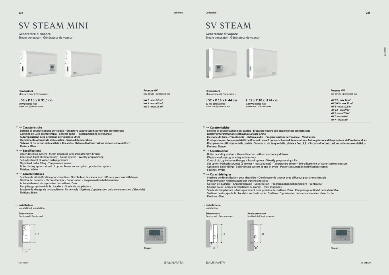 ∙ Sistema di decalcificazione per caldaia ∙ Erogatore vapore con dispenser per aromaterapia