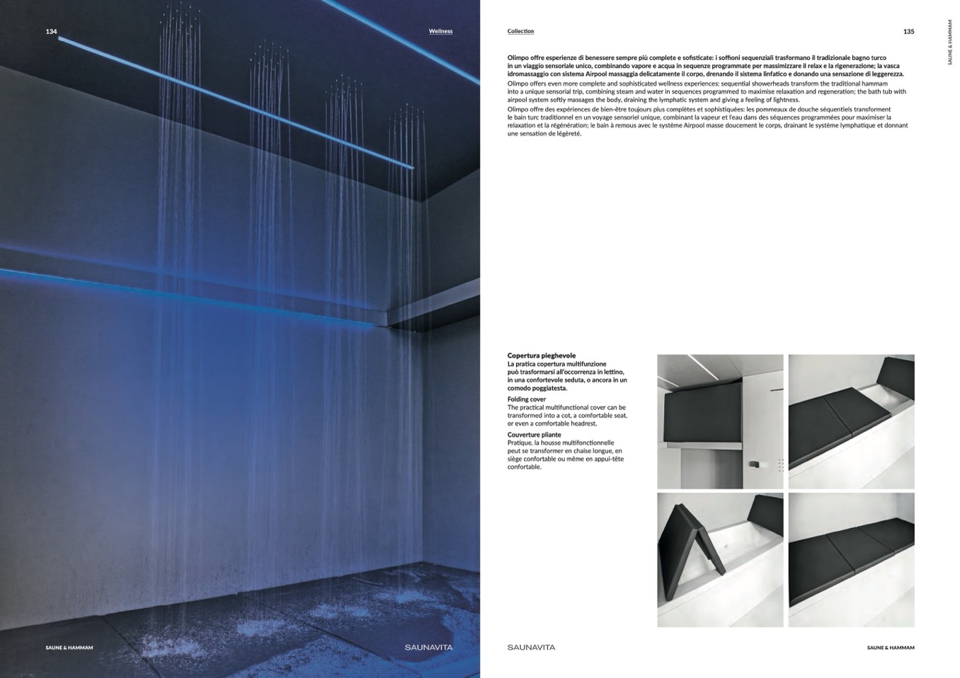 in un viaggio sensoriale unico, combinando vapore e acqua in sequenze programmate per massimizzare il relax e la rigenerazione; la vasca