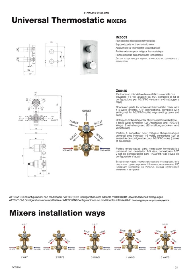 ATTENZIONE! Configurazioni non modificabili / ATTENTION! Configurations not editable / VORSICHT! Unveränderliche Festlegungen