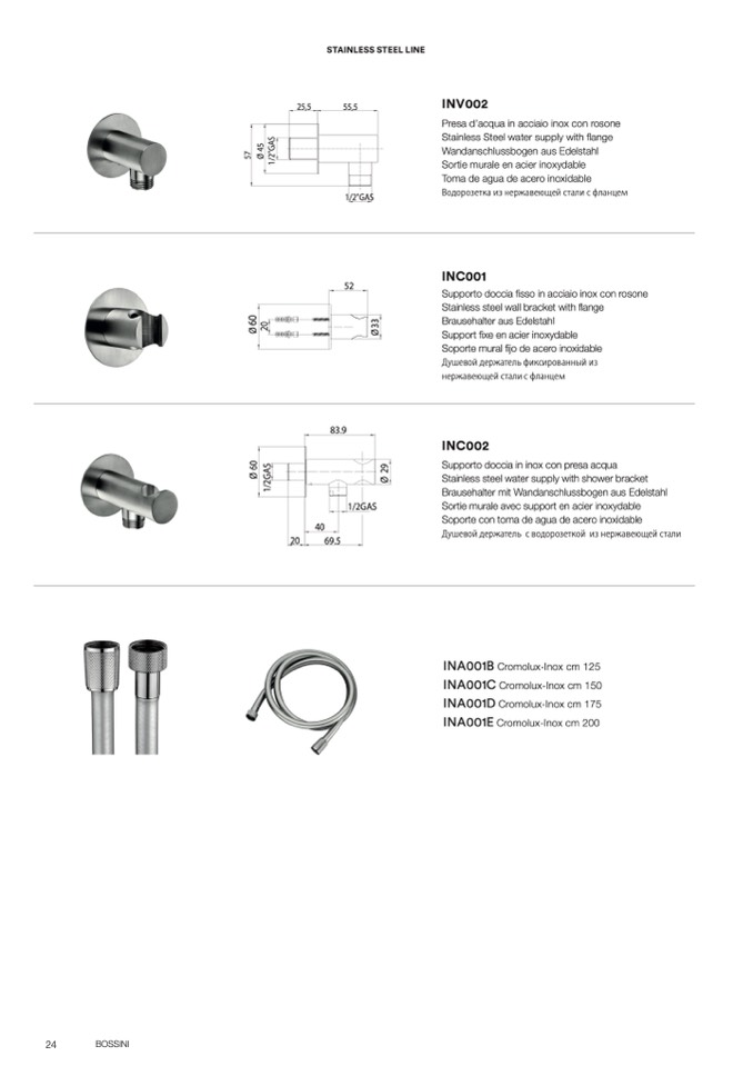 Brausehalter mit Wandanschlussbogen aus Edelstahl