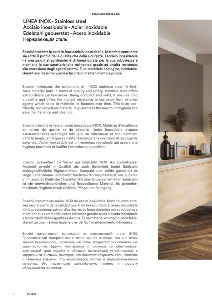 Bossini präsentiert die Serien aus Edelstahl INOX. Als Erste-Klasse-
