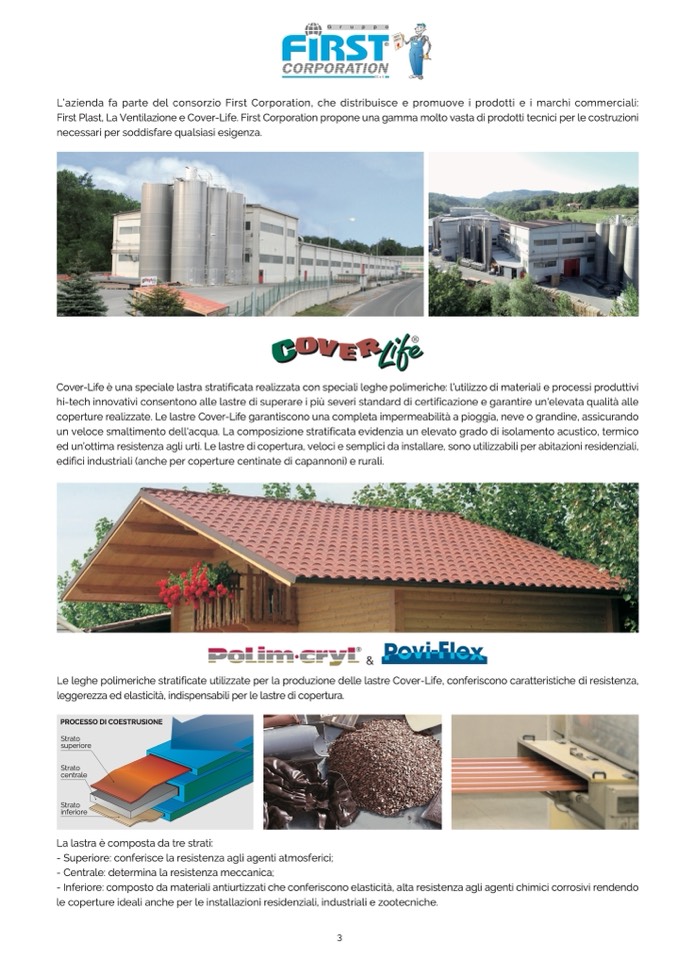 First Plast, La Ventilazione e Cover-Life. First Corporation propone una gamma molto vasta di prodotti tecnici per le costruzioni
