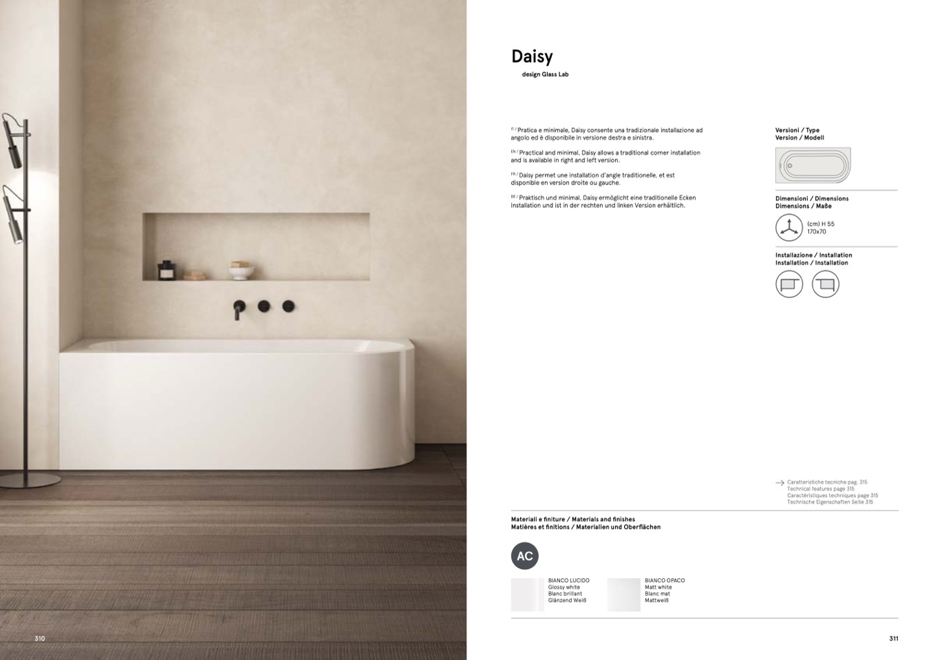 Practical and minimal, Daisy allows a traditional corner installation