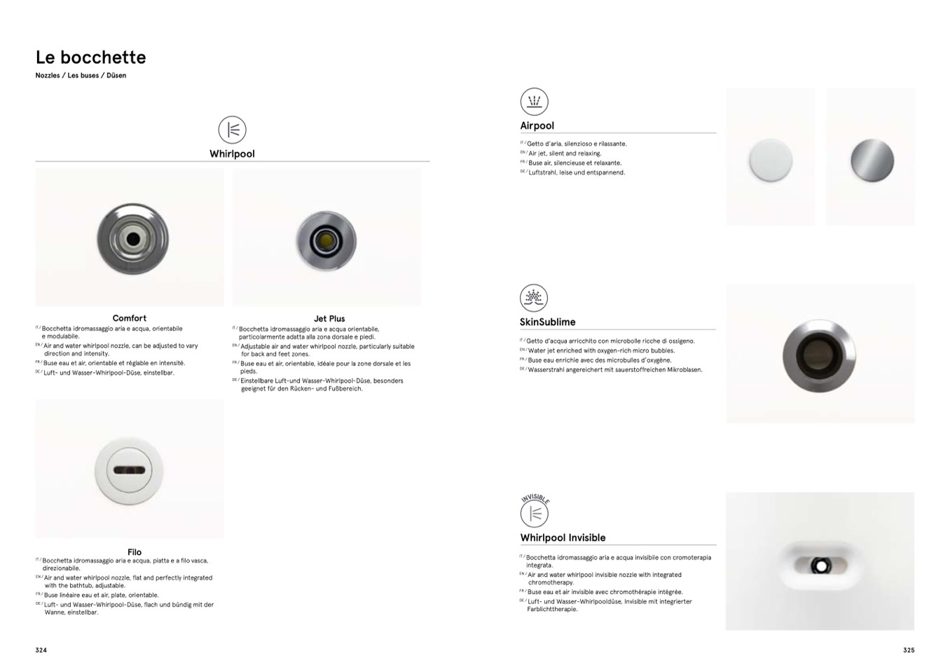 Bocchetta idromassaggio aria e acqua invisibile con cromoterapia