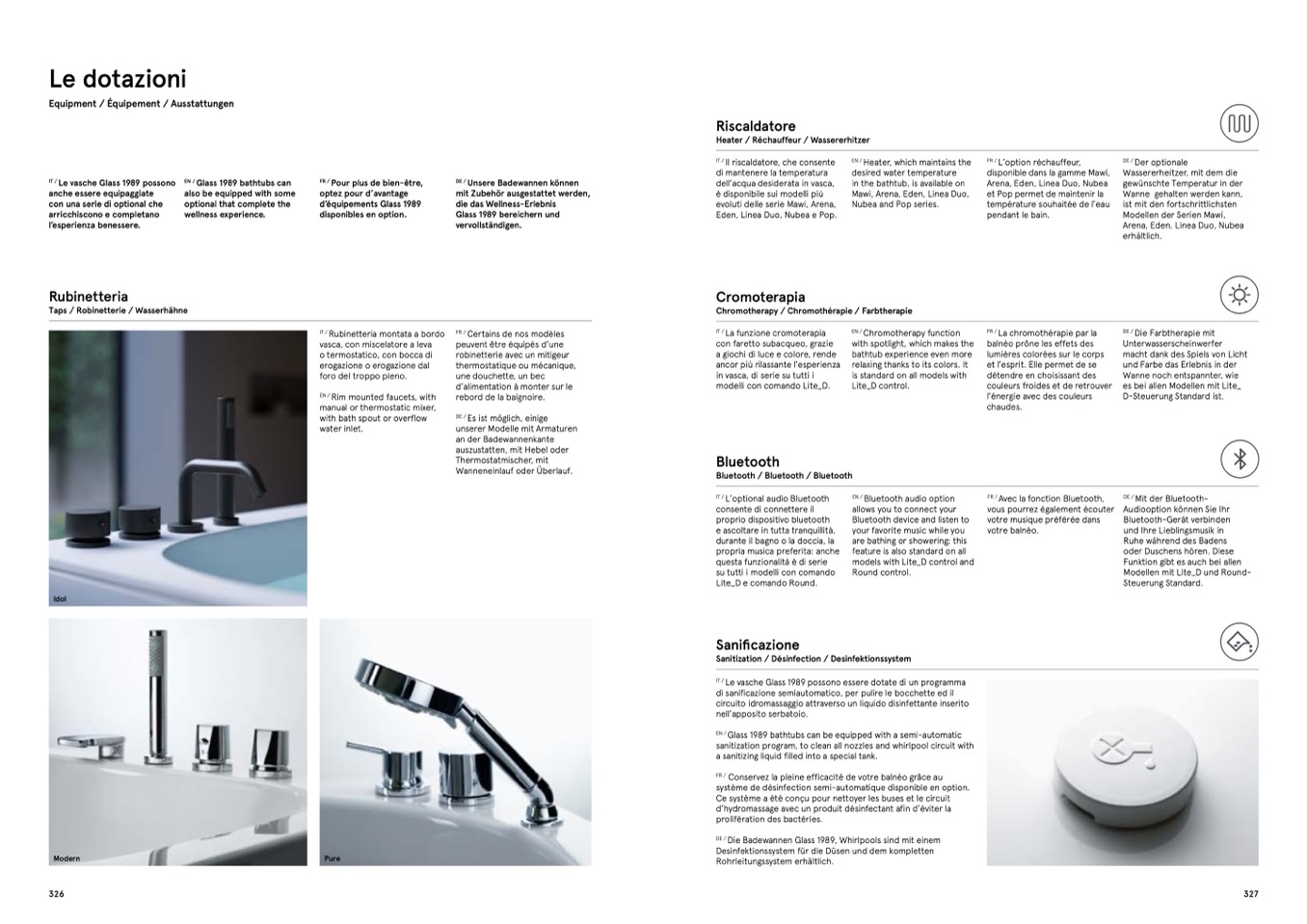 Le vasche Glass 1989 possono essere dotate di un programma