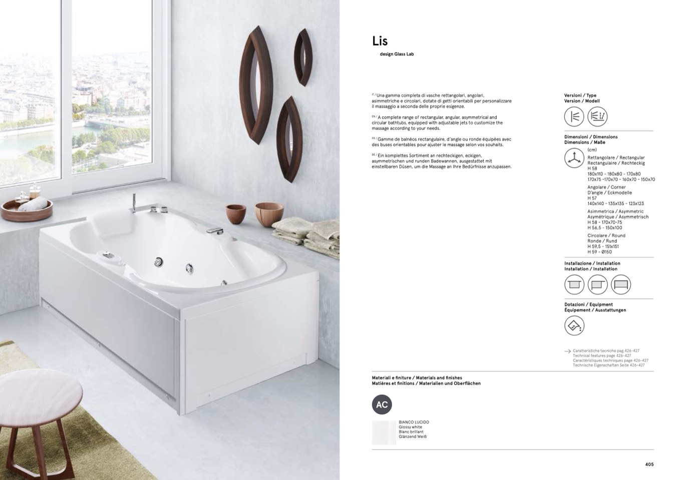 Una gamma completa di vasche rettangolari, angolari,