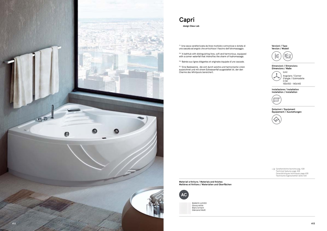 with a corner waterfall that intensifies the charm of hydromassage.
